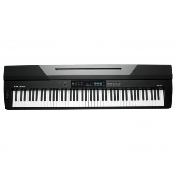 Цифрове піаніно Kurzweil KA-70 з 88 напівзваженими клавішами дає реалістичні відчуття гри на роялі. KA-70 – кращий вибір для новачків і професіоналів, оскільки крім достовірної передачі звуку акустичного фортепіано, воно містить звуки органу, гітари та оркестрових інструментів. Крім того, щоб урізноманітнити Вашу гру в КА-70 передбачена 128-голосова поліфонія, 20 експресивних звуків, 50 стилів автоакомпанементу, можливість розбиття на зони клавіатури і нашарування тембрів, транспонування, ефекти реверберації, хоруса, еквалайзер, рекордер. Також є USB порт для підключення до комп’ютера, два виходи для навушники, 60 Вт акустична система, 1/4″ стерео аудіо входи і виходи.